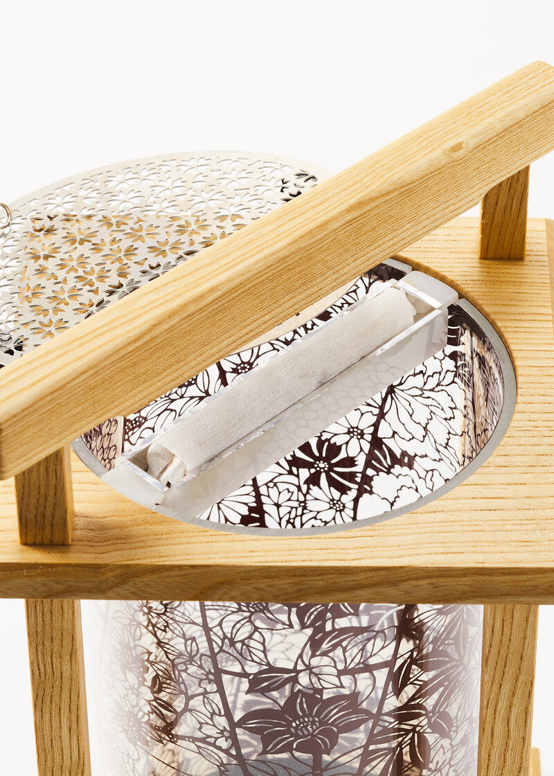 The Kaoru Andon was created to present the Japanese craftsmanship of Ise Katagami in the form of a traditional Japanese lantern for night walks. It is with the same Kataribe process that the Kaoru is meticulously manufactured, mixing both Ise Katagami and high quality Japanese wood.