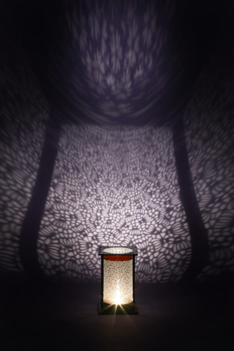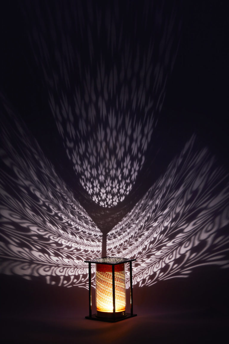 Designed to transform Ise Katagami paper into a handcrafted object, the Kataribé redefines the use of these ancestral techniques to make lamps that blend culture and innovation. By incorporating LED technology with two types of lighting (tinted and candlelight), the Kataribe inspires relaxation and peace of mind through Japanese shadows. Enjoy a real trip to Japan by discovering the various Kimono patterns that AKARI has implanted in its lamps.